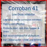 CORROBAN 41 is a closed system corrosion inhibitor based on sodium nitrite synergized with a blend of organic corrosion inhibitors intended to protect steel, copper and other non-ferrous metals (excluding aluminium). As such CORROBAN 41 is the ideal treatment for closed systems such as chilled water, LTHW and MTHW systems.