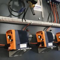 Our uniquely designed pump shelf bracket allows for the fitting of both Iwaki and Prominent dosing pumps on a sturdy footing. The pump bracket was designed to be capable of carrying both popular pump brands and be fixed within our dosing cabinets making it easy to use within a confined space.